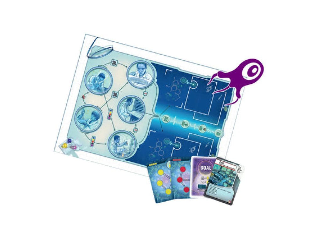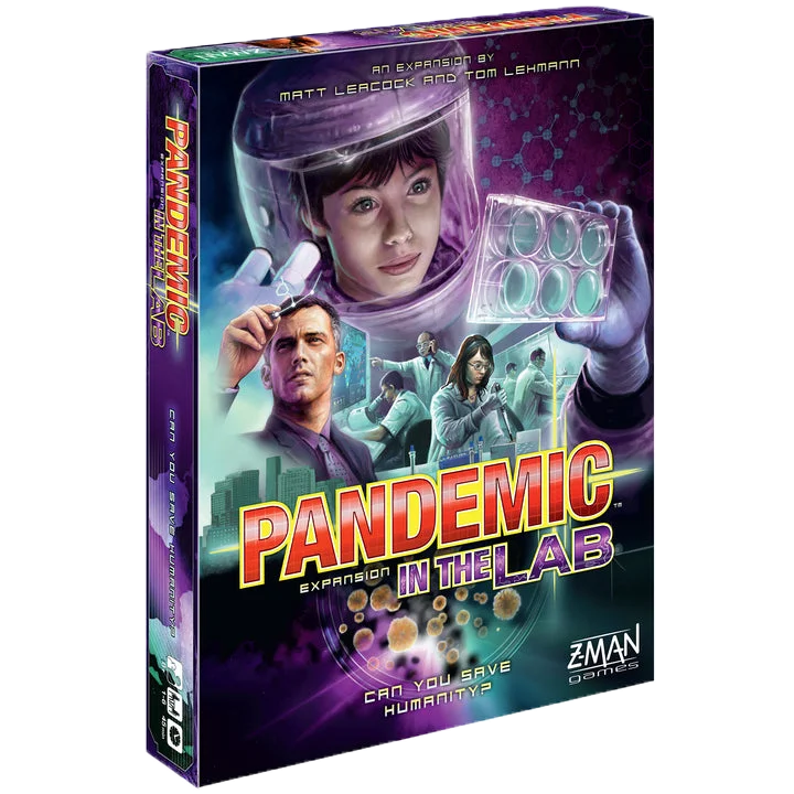 In Pandemic: In the Lab, the second expansion for Pandemic, you will use a new game board that allows you to move the pawns in a laboratory. The goal of this activity is the same as in the base game – finding cures for diseases – but this time in a new way. Behind sealed bio-hazard doors, scientists race against time to sequence diseases, take samples, and test cures.